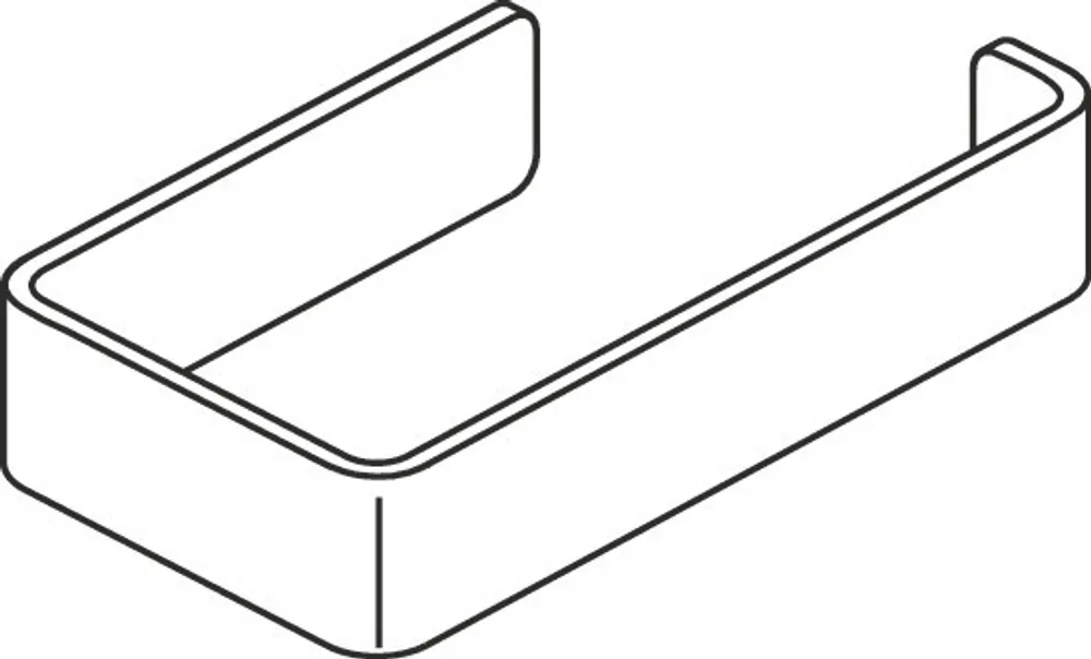 Vis mere retvinklet buet, U-formet beslag med kubiske radier og indrykket vægsokkel, Til én toiletrulle (USA-format), 150 mm bred og 90 mm dyb, Fremstillet af rustfrit stålbånd af høj kvalitet, 4 mm tykt, Mat slebet overflade, inklusive korrosionsfrit fastgørelsesmateriale.
