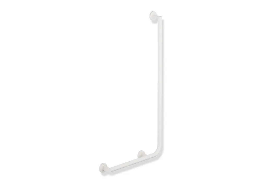 rustfrit stål, pulverlakeret, Vandret længde 500 mm, lodret længde 1000 mm, diameter 30 mm, venstre udgave, Testet op til 200 kg ved brug af HEWI-fastgørelsesmateriale, Anbefalet maksimal vægt for brugeren: 150 kg, opfylder kravene i SIA 500.