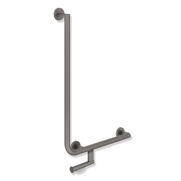 Vis mere rustfrit stål, pulverlakeret, Vandret længde 500 mm, lodret længde 750 mm, diameter 30 mm, højre udgave, Testet op til 200 kg ved brug af HEWI-fastgørelsesmateriale, Anbefalet maksimal vægt for brugeren: 150 kg, opfylder kravene i henhold til ÖNORM B1600/1601