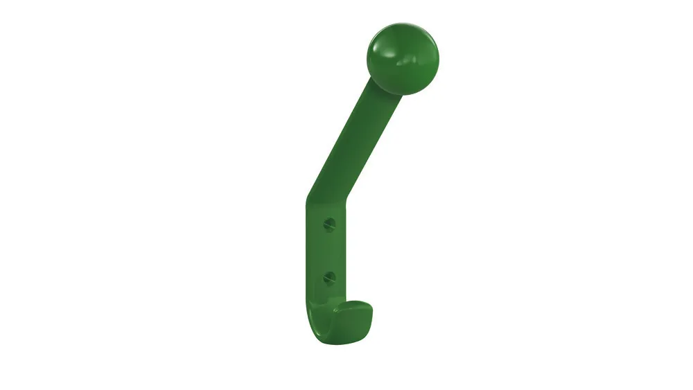 Krog med kugle, til ophængning af tøj og hovedbeklædning, 172 mm høj, 22 mm bred og 116 mm dyb, fremstillet af kvalitetspolyamid i henhold til HEWI-farveskemaet, leveres uden skruer og dyvler.