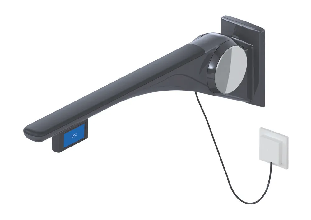 Vis mere Udkragning i aluminium, pulverlakeret, blank med grebspude af plast, med højglansforkromede designelementer, plastoverflade af høj kvalitet og ridsefast pulverlakering, fremspring 700 mm, med udligning (E version), højre udgave, Enkel installation takket være separat installation af monteringspladen i rustfrit stål, mat poleret, testet op til 150 kg ved brug af HEWI-fastgørelsesmateriale, Anbefalet maksimal vægt for brugeren: 150 kg, er produceret i overensstemmelse med CE- og UKCA-forordningen (EU) 2017/745 om medicinsk udstyr.