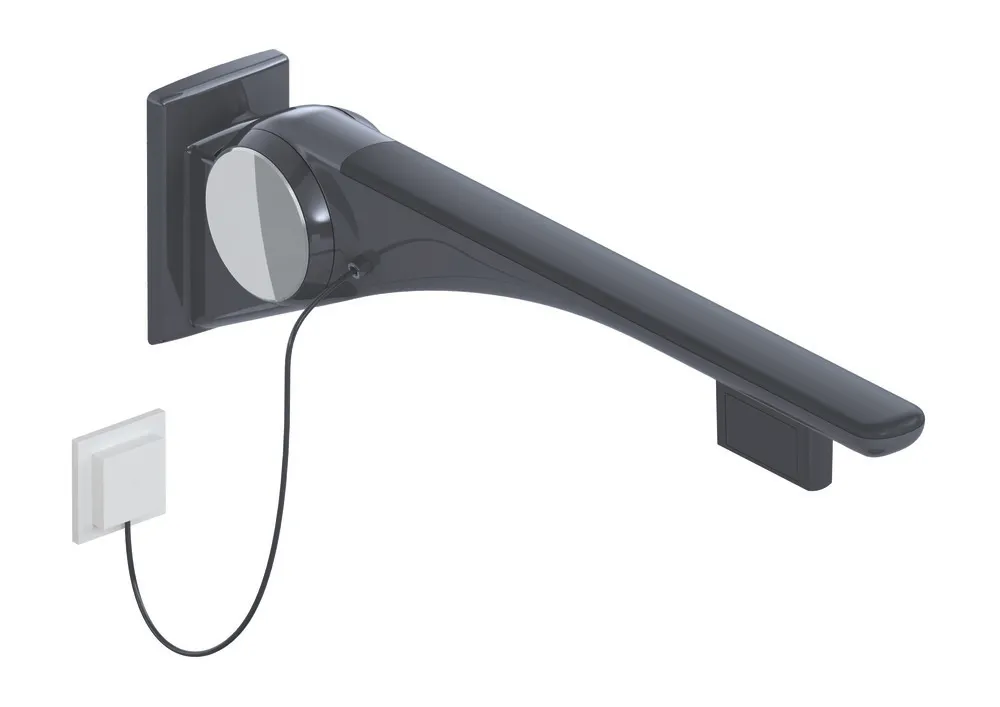 Grundlæggende foldbart støttegreb med WC-skylleudløser E-version direkte fra LifeSystem-sortimentet
