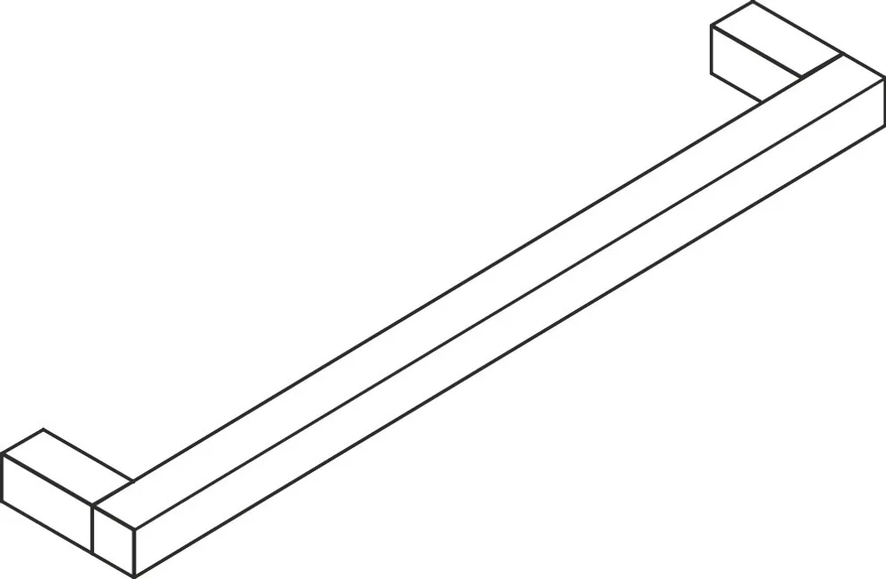 Vis mere fremstillet af en firkantet profil med harmoniske radier, bøjet i rette vinkler i enderne, uden montering af rosetter, centerlinjeafstand 600 mm, 79 mm dyb, Firkantet 25 mm, Metal, Forkromet i høj kvalitet, til vægmontering, inklusive korrosionsfrit fastgørelsesmateriale.