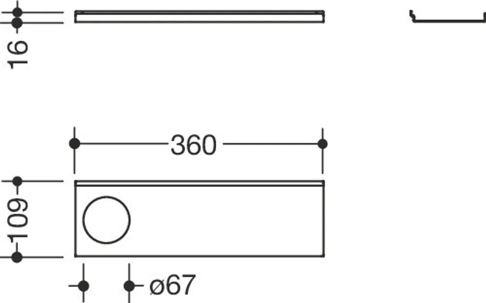 Edelstahl, pulverbeschichtet, adaptive Zusatzfunktion für die Wandprofile 950.13.00.. und die Waschtischmodelle 950.13.20.., 950.13.30.., 950.19.087 und 950.19.088, Ablagefläche 360 mm breit, 102 mm tief,