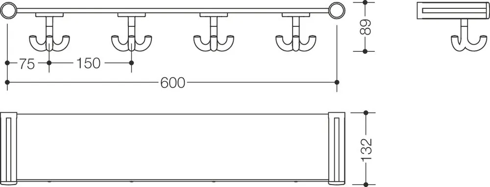 HEWI Ablage mit Dreifachhaken, 4 Plätze