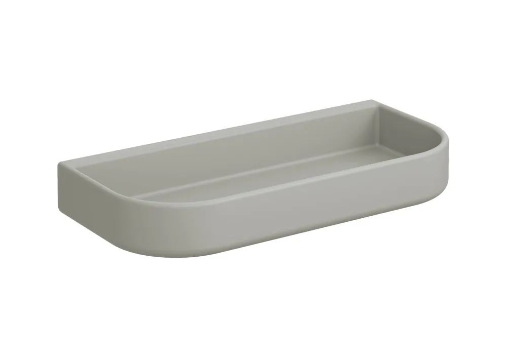 längliche Schale mit flachem Boden und zwei Ablauflöchern, 250 mm breit, 35 mm hoch und 115 mm tief, aus hochwertigem, mattem Polyamid in den HEWI Farben 99 (Reinweiß), 98 (Signalweiß), 97 (Lichtgrau), 95 (Felsgrau) und 92 (Anthrazitgrau), inklusive korrosionsfreiem HEWI Befestigungsmaterial.