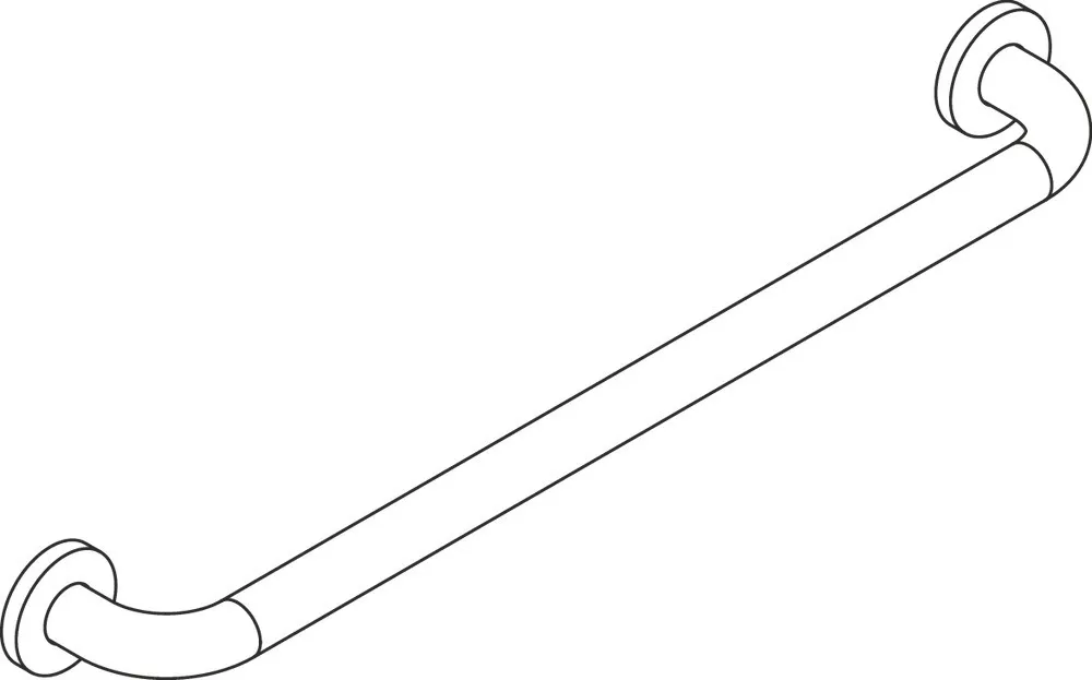 an den Enden im rechten Winkel abgebogene Stange mit Befestigungsrosetten, Befestigung mit Rosetten, 570 mm breit (Achsmaß), 85 mm tief und 28 mm im Durchmesser, Rosettendurchmesser 60 mm, aus hochwertigem Polyamid nach HEWI Farbtabelle, inklusive korrosionsfreiem HEWI Befestigungsmaterial.