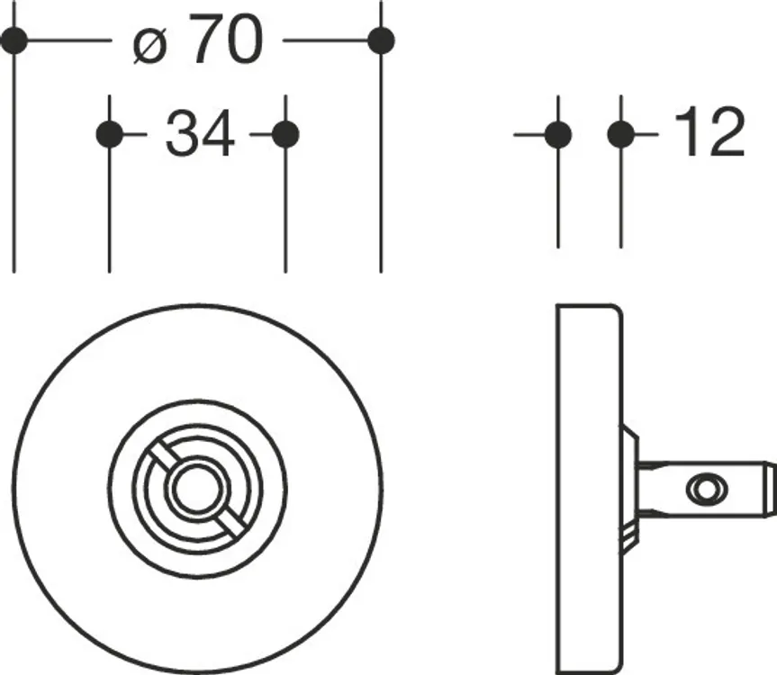 Mehr anzeigen für Griffe Durchmesser 33 mm mit Rosette Durchmesser 70 mm, zur einseitigen Griffbefestigung von vorn mit Polyamid-Rosetten.