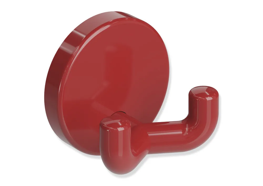 Doppelhaken mit Befestigungsrosette, diebstahlgeschützt durch verdeckte Verschraubung, 31 mm tief, Rosettendurchmesser 40 mm, aus hochwertigem Polyamid nach HEWI Farbtabelle, Lieferung ohne Schrauben und Dübel.
