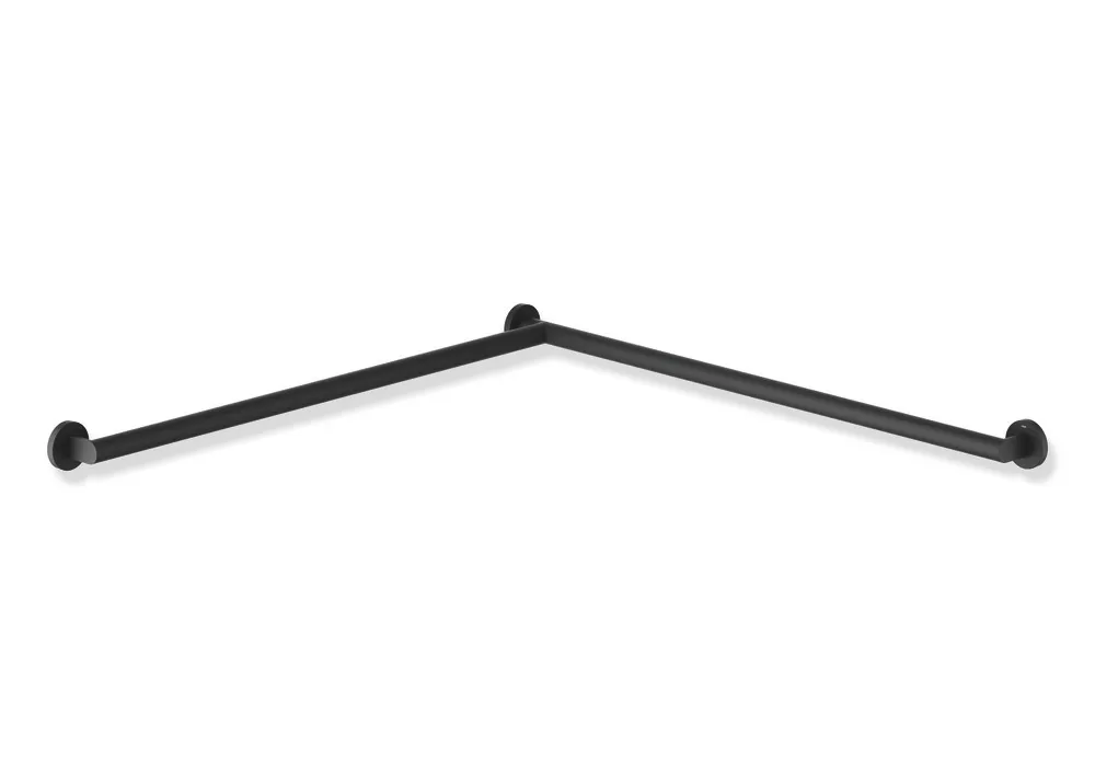 Mehr anzeigen aus hochwertigem Edelstahl, pulverbeschichtet in den HEWI Farben DX (Weiß tiefmatt), DC (Schwarz tiefmatt) und SC (Dunkelgrau Perlglimmer tiefmatt), waagerecht angeordnete Stangen mit Befestigungsrosetten, Ausführung links, waagerechte Längen 37 5/16 inch (947 mm), 70 mm tief, Stangendurchmesser 32 mm, Rohrstärke 2 mm, Rosettendurchmesser 70 mm, belastbar bis 150 kg, inklusive HEWI Befestigungsmaterial, Erfüllt die Anforderungen nach 2010 ADA Standards und ICC/ANSI A117.1-2017.