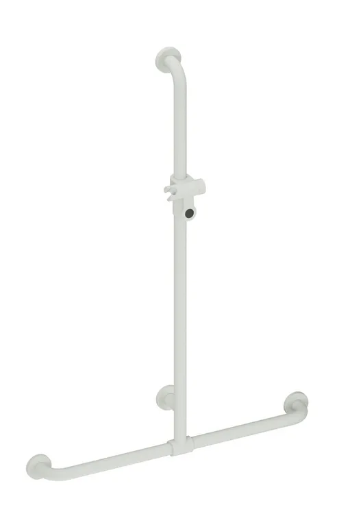 Polyamid, matt, mit stufenlos verstellbarem Brausehalter, senkrechte Länge 1250 mm, waagerechte Länge 1184 mm, Durchmesser 33 mm, getestet bis 200 kg bei Verwendung mit HEWI Befestigungsmaterial, empfohlenes maximales Gewicht des Anwenders: 150 kg.