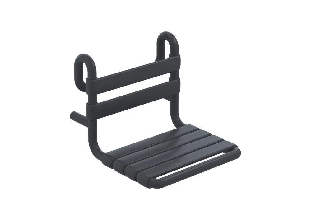 Polyamid, matt, Sitzfläche 450 mm breit, 352 mm tief, zum Einhängen in Duschhandläufe und Haltegriffe, Stangendurchmesser 30, 32 und 33 mm, getestet bis 200 kg, empfohlenes maximales Gewicht des Anwenders: 150 kg, erfüllt die Anforderungen nach SIA 500.