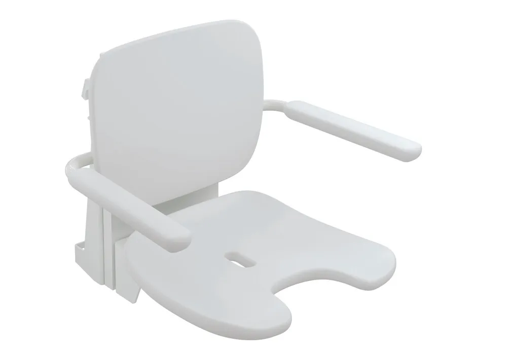 Mehr anzeigen Einhängung aus Edelstahl, pulverbeschichtet in den HEWI Farben Signalweiß, glänzend mit Sitz-/Rückenfläche und Armlehnen aus hochwertigem PUR/Integral-Hartschaum in SD (Signalweiß, matt) oder Einhängung in Anthrazit, glänzend mit Sitz-/Rückenfläche und Armlehnen in DR (Anthrazit, matt) mit hochglänzend verchromten Designelementen, hochwertige Kunststoffoberfläche und kratzfeste Pulverbeschichtung, Sitzfläche 452 mm breit, 450 mm tief, mit Rückenlehne und getrennt klappbaren Armlehnen, Sitzfläche mit Schamausschnitt und Wasserablauf, Sitzhöhe in vier Stufen von 420 mm bis 510 mm verstellbar (je 30 mm), getestet bis 200 kg, empfohlenes maximales Gewicht des Anwenders: 150 kg, wird gemäß CE- und UKCA-Verordnung (EU) 2017/745 über Medizinprodukte produziert, erfüllt die Anforderungen nach SIA 500.
