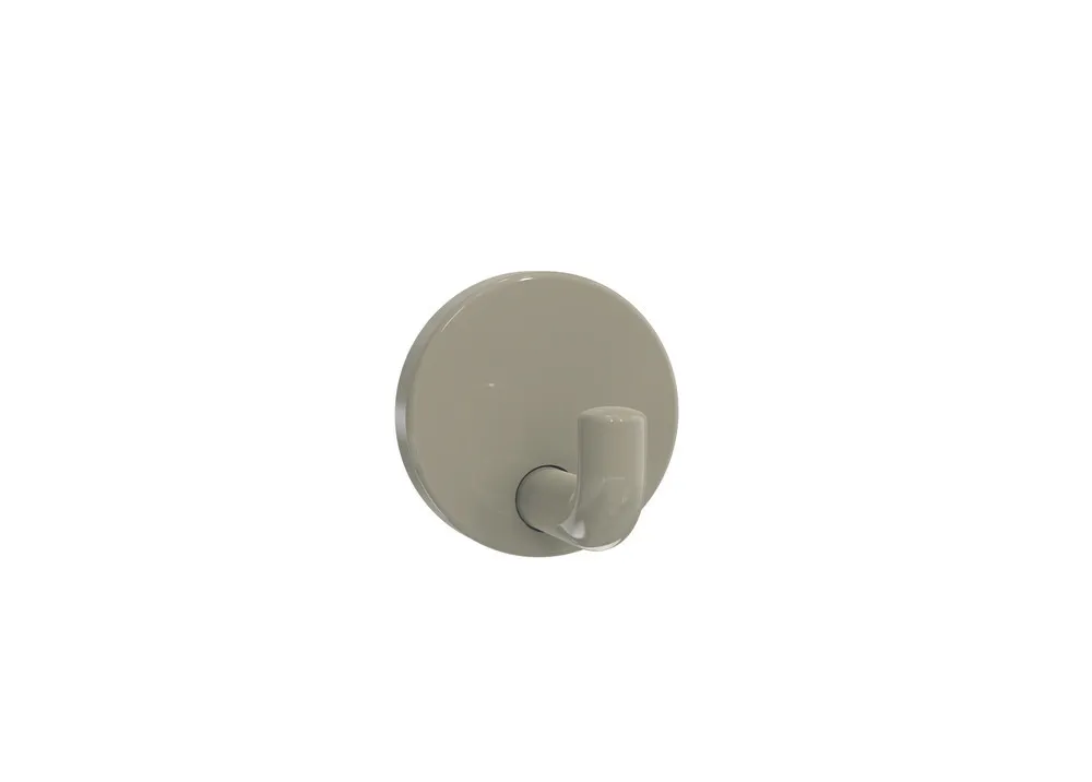 Mehr anzeigen rechtwinklig gebogener, zylindrischer Haken mit Befestigungsrosette, diebstahlgeschützt durch verdeckte Verschraubung, 46 mm tief, Rosettendurchmesser 50 mm, aus hochwertigem Polyamid nach HEWI Farbtabelle, Lieferung ohne Schrauben und Dübel.