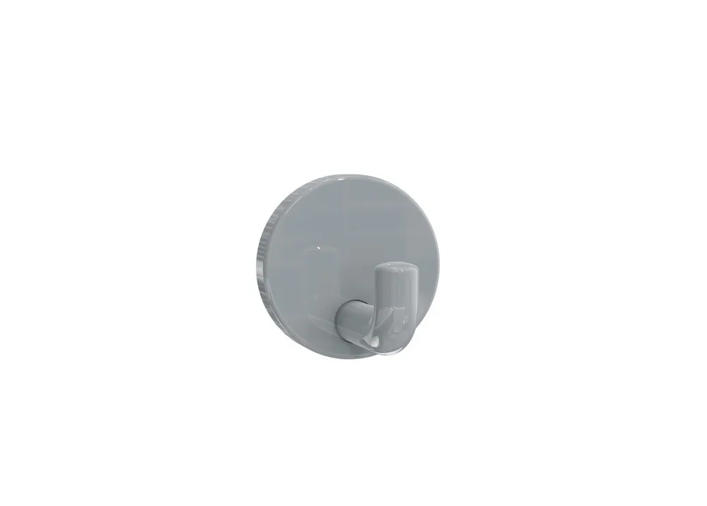 rechtwinklig gebogener, zylindrischer Haken mit Befestigungsrosette, diebstahlgeschützt durch verdeckte Verschraubung, 46 mm tief, Rosettendurchmesser 50 mm, aus hochwertigem Polyamid nach HEWI Farbtabelle, Lieferung ohne Schrauben und Dübel.