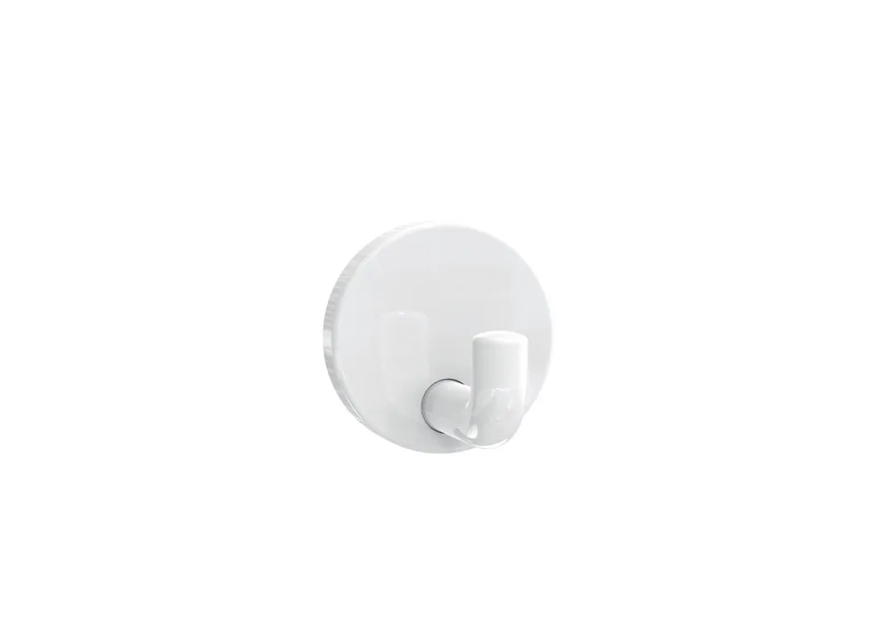 rechtwinklig gebogener, zylindrischer Haken mit Befestigungsrosette, diebstahlgeschützt durch verdeckte Verschraubung, 46 mm tief, Rosettendurchmesser 50 mm, aus hochwertigem Polyamid nach HEWI Farbtabelle, Lieferung ohne Schrauben und Dübel.