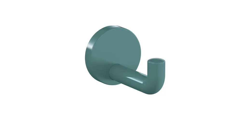 rechtwinklig gebogener, zylindrischer Haken mit Befestigungsrosette, diebstahlgeschützt durch verdeckte Verschraubung, 100 mm tief, Rosettendurchmesser 70 mm, aus hochwertigem Polyamid nach HEWI Farbtabelle, Lieferung ohne Schrauben und Dübel.