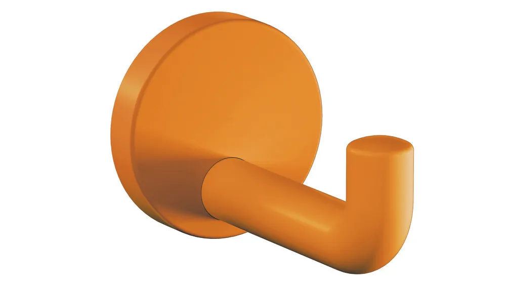Mehr anzeigen rechtwinklig gebogener, zylindrischer Haken mit Befestigungsrosette, diebstahlgeschützt durch verdeckte Verschraubung, 100 mm tief, Rosettendurchmesser 70 mm, aus hochwertigem, mattem Polyamid nach HEWI Farbtabelle.