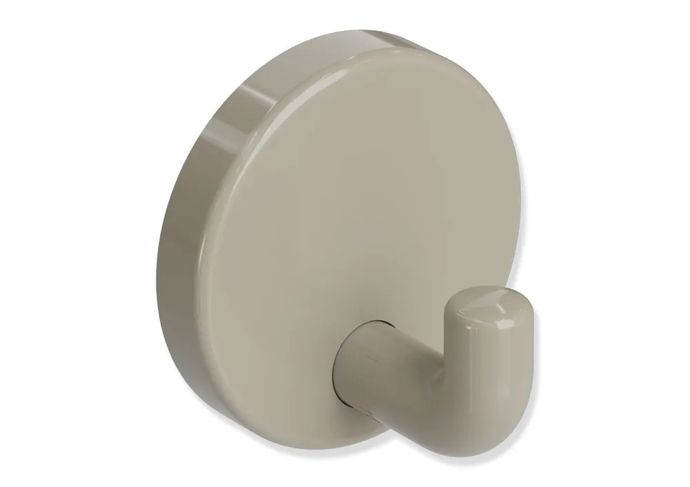rechtwinklig gebogener, zylindrischer Haken mit Befestigungsrosette, diebstahlgeschützt durch verdeckte Verschraubung, 30 mm tief, Rosettendurchmesser 40 mm, aus hochwertigem Polyamid nach HEWI Farbtabelle, Lieferung ohne Schrauben und Dübel.