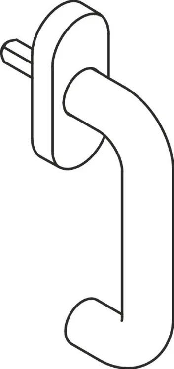 Modell 111 aus Polyamid, Durchmesser 20 mm, 130 mm lang und 7 mm Vierkantstift, der Fenstergriff erfüllt die Vorgaben der DIN 18040, Ovalrosette 72 x 32 mm, mit Stützzapfen, Lieferung ohne Befestigungsschrauben.