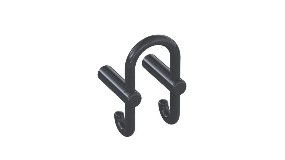 zwei Kunststoffstifte mit bügelförmigem Haken, Verletzungsschutz durch nach hinten zeigende Haken, 90 mm breit, 165 mm hoch und 95 mm tief, Achsabstand 75 mm, aus hochwertigem Polyamid nach HEWI Farbtabelle, Lieferung einschließlich Befestigungsmaterial.