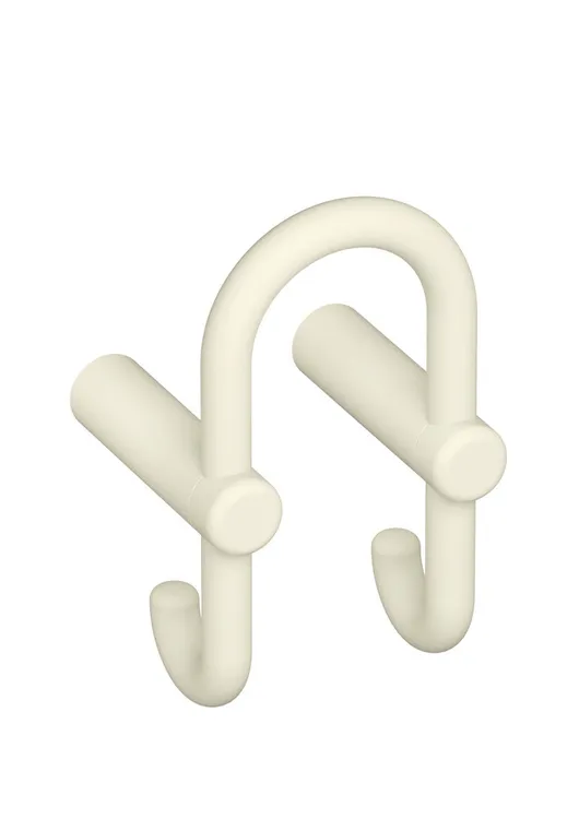 Mehr anzeigen zwei Kunststoffstifte mit bügelförmigem Haken, Verletzungsschutz durch nach hinten zeigende Haken, 90 mm breit, 165 mm hoch und 95 mm tief, Achsabstand 75 mm, aus hochwertigem, mattem Polyamid nach HEWI Farbtabelle, Lieferung einschließlich Befestigungsmaterial.