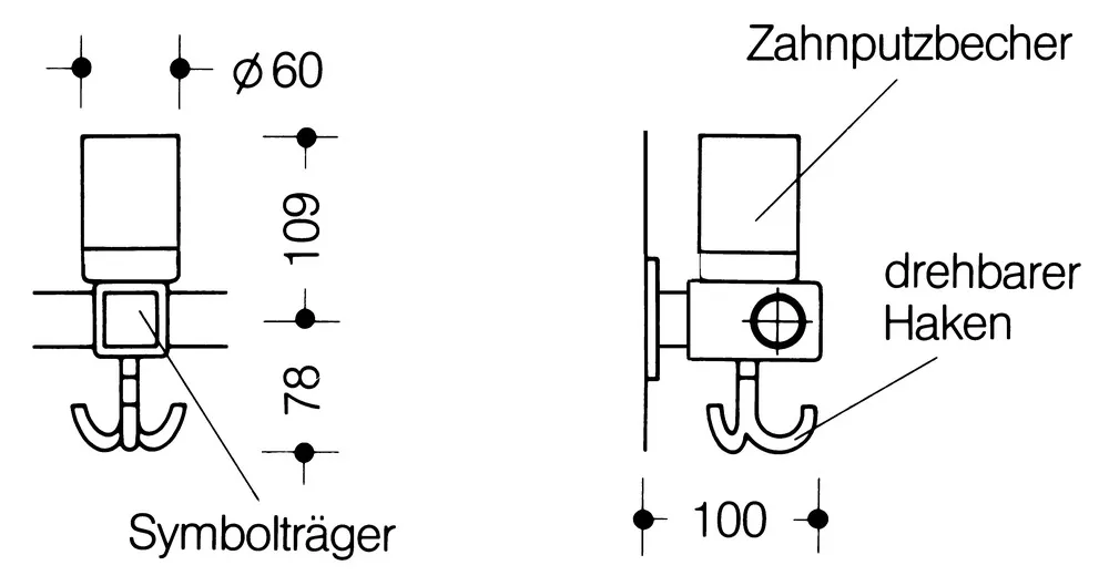 - mit Zahnputzbecher und drehbarem 3-fach-Haken