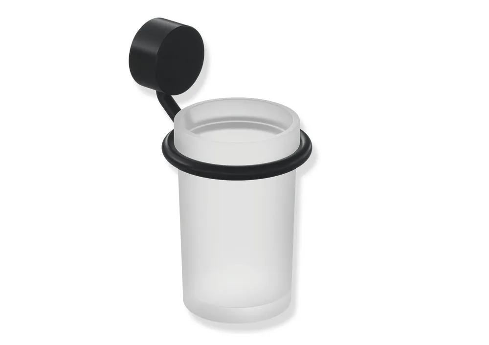 Halter aus Edelstahl, schwarz matt pulverbeschichtet, Becher aus hochwertigem, satiniertem Kristallglas.