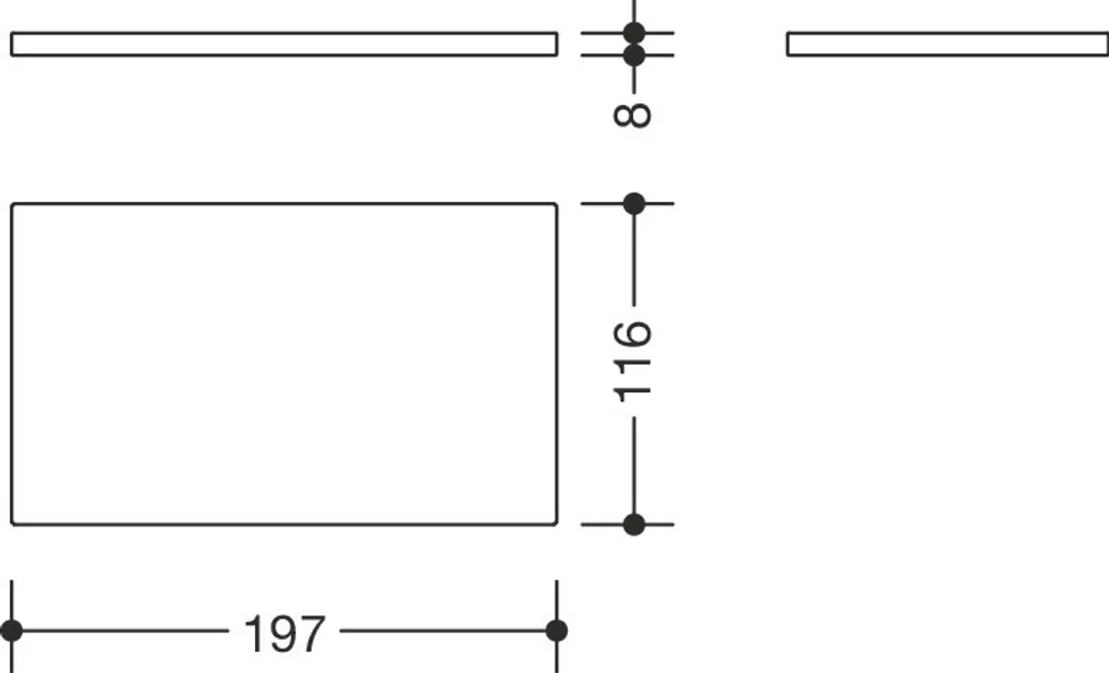 - 197 mm breit, 8 mm stark und 116 mm tief