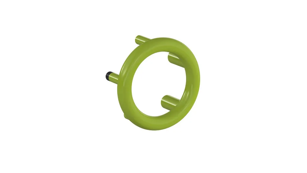 Mehr anzeigen Kreisrunder Griff, mit gerader Anbindung, und zwei zusätzlichen Stützen, Achsmaß 162,5 mm, zur Montage vorgerichtet für Trennwand-Türen, Achsmaß 100 mm, aus durchgefärbtem Polyamid, Durchmesser 30 mm, für einseitige und paarweise Befestigung.