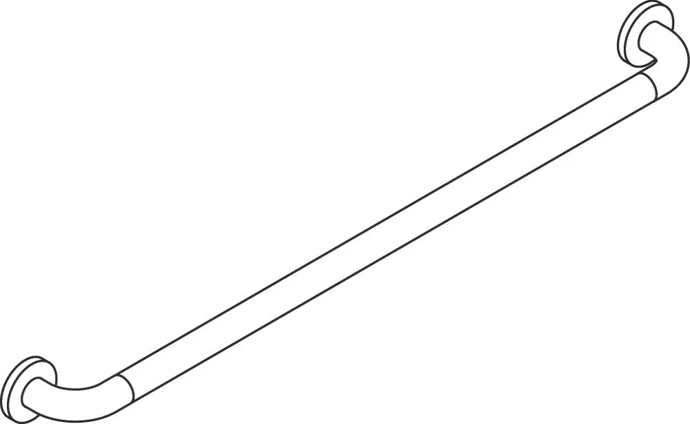 an den Enden im rechten Winkel abgebogene Stange mit Stahl-Befestigungsrosetten, Achsmaß 900 mm, Stangendurchmesser 33 mm, Rosettendurchmesser 70 mm, mit durchgehendem, korrosionsgeschütztem Stahlkern, aus hochwertigem, mattem Polyamid, in den HEWI Farben 99 (Reinweiß), 98 (Signalweiß), 97 (Lichtgrau), 95 (Felsgrau) und 92 (Anthrazitgrau), inkl. korrosionsfreiem HEWI Befestigungsmaterial.