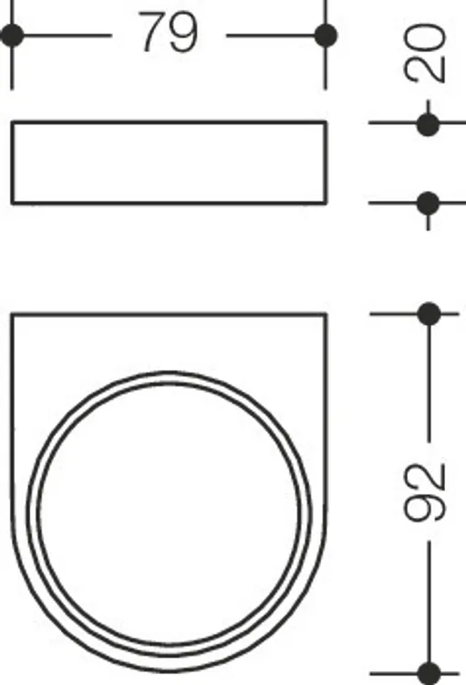 - 79 mm breit und 20 mm hoch und 92 mm tief