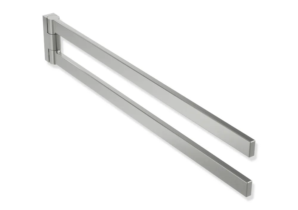 - Handtuchhalter mit zwei übereinander angeordneten Haltearmen im geometrischen Vierkantdesign