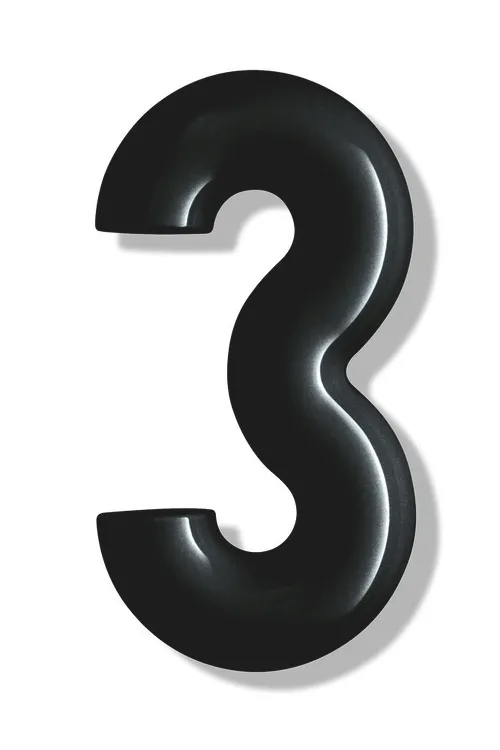 Ziffer 3, aus witterungsbeständigem Spezial-Polyamid, Durchmesser 33 mm, Ziffer 167 mm hoch, diebstahlgeschützte Befestigung.