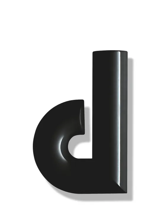 Buchstabe d, aus witterungsbeständigem Spezial-Polyamid, Durchmesser 33 mm, Ziffer 134 mm hoch, diebstahlgeschützte Befestigung.