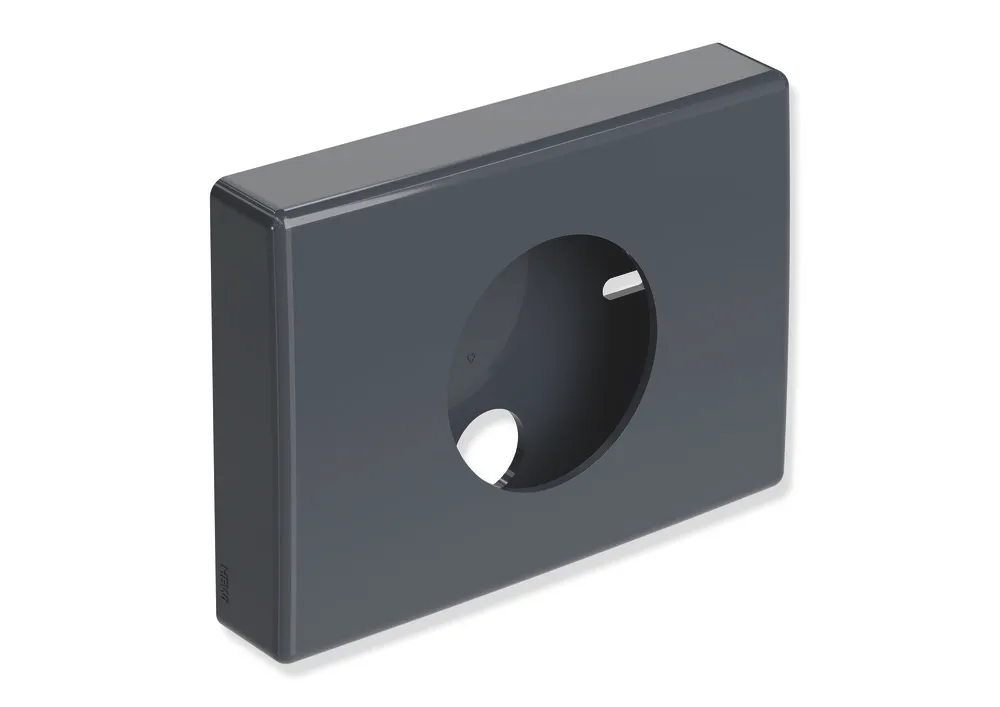 143 mm breit, 103 mm hoch und 27 mm tief, aus hochwertigem Polyamid, inklusive korrosionsfreiem HEWI Befestigungsmaterial.
