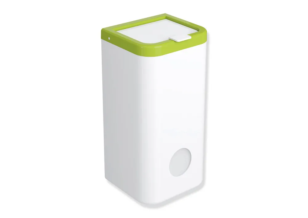 - mit integrierter Aufnahme für handelsübliche Hygienebeutel aus Kunststoff (max. Packungsgröße L 130 x B 90 x H 20 mm)
