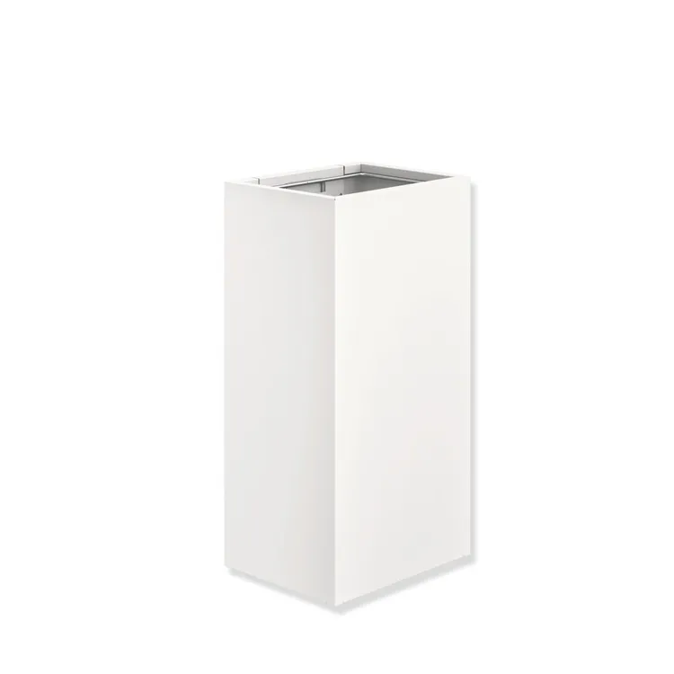 kantiger Grundkörper, dient als Abfallbehälter für benutzte Papierhandtücher, Fassungsvermögen ca. 25 l, 260 mm breit, 501 mm hoch und 203 mm tief, zur Wandmontage und auch freistehend einsetzbar, aus hochwertigem Edelstahl, pulverbeschichtet in den HEWI Farben DX (Weiß tiefmatt), DC (Schwarz tiefmatt) und SC (Dunkelgrau Perlglimmer tiefmatt), unsichtbare, integrierte Beutelhalterung mit Ausziehfunktion zur vereinfachten Einhängung und Entnahme des Beutels, inklusive korrosionsfreiem HEWI Befestigungsmaterial.