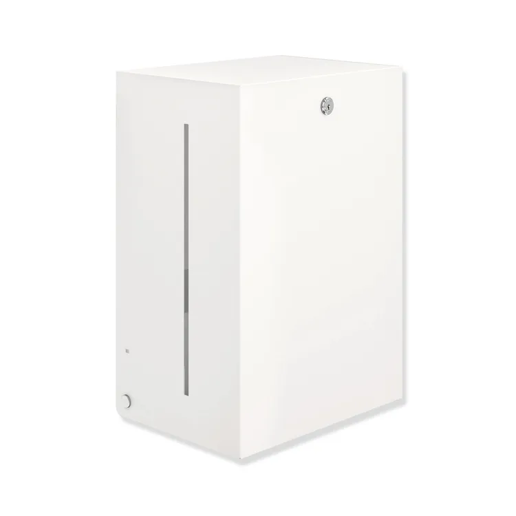 Mehr anzeigen einfacher Papierrollenwechsel, mit Batteriewechsel-Anzeige, automatische Papier-Ausgabe am Waschtisch nach dem Abreißen des Papiers, Größe: 284 mm breit, 405 mm hoch und 210 mm tief, zur Wandmontage, aus hochwertigem Edelstahl, pulverbeschichtet in den HEWI Farben DX (Weiß tiefmatt), DC (Schwarz tiefmatt) und SC (Dunkelgrau Perlglimmer tiefmatt), inklusive korrosionsfreiem HEWI Befestigungsmaterial, Batterien (D - Mono - LR20 - 1,5 V / 4 Stück) nicht im Lieferumfang enthalten, umrüstbar auf Netzanschluss 950.06.E01.