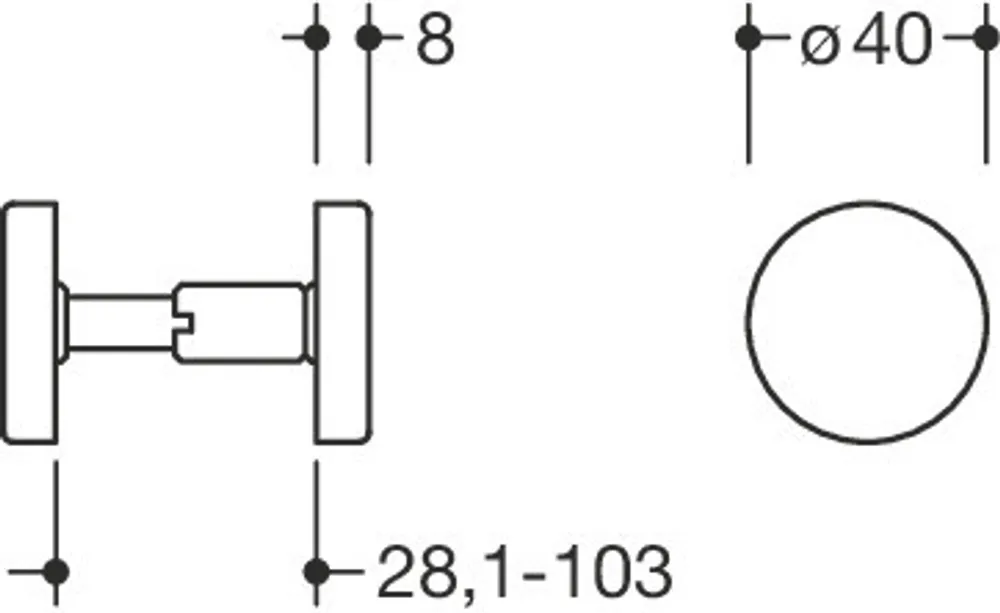 Polyamid, hochglänzend, zum beidseitigen Abdecken von vorhandenen Befestigungsbohrungen mit blinder Kunststoffkappe (ø 40 x 8 mm), bitte Türstärke angeben
