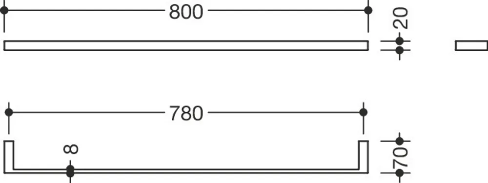 - 800 mm breit, 20 mm hoch, 70 mm tief