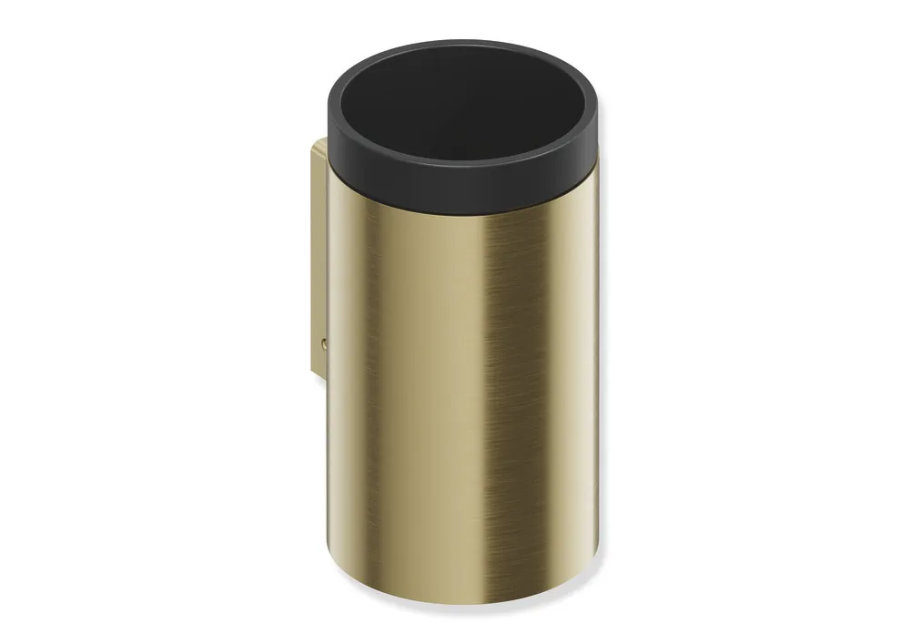 Halter aus hochwertigem Edelstahl, PVD beschichtet, Becher aus schwarz mattem Polyamid.