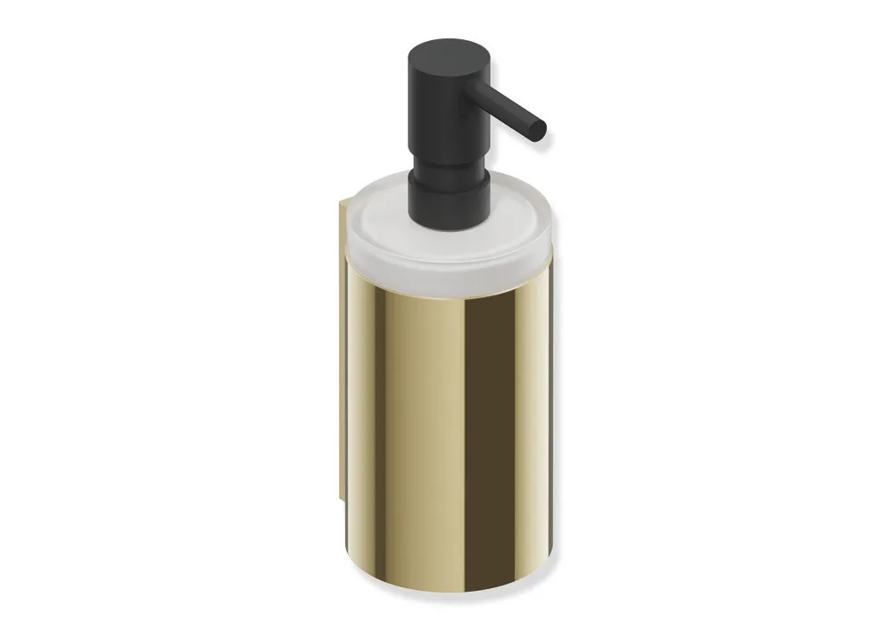 200 ml, Halter PVD beschichtet, Seifenspender satiniertes Glas, Pumpenkopf schwarz