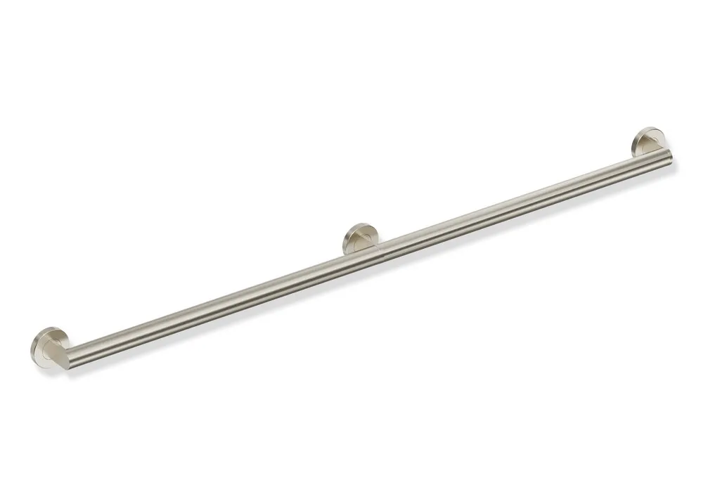 Mehr anzeigen Edelstahl, PVD beschichtet, Achsmaß 48 1/16 inch (1220 mm), Tiefe 2 3/4 inch (70 mm), Stangendurchmesser 1 1/4 inch (32 mm), belastbar bis 330 lbs (150 kg), erfüllt die Anforderungen nach 2010 ADA Standards und ICC/ANSI A117.1-2017.