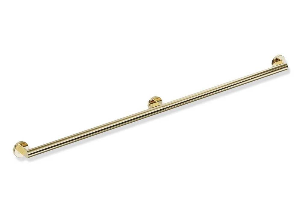 Mehr anzeigen Edelstahl, PVD beschichtet, Achsmaß 52 inch (1321 mm), Tiefe 2 3/4 inch (70 mm), Stangendurchmesser 1 1/4 inch (32 mm), belastbar bis 330 lbs (150 kg), erfüllt die Anforderungen nach 2010 ADA Standards und ICC/ANSI A117.1-2017.
