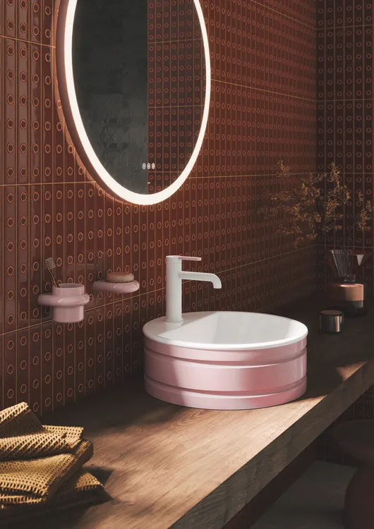Mehr anzeigen offizielles Barbie™ Lizenzprodukt, Aufsatzwaschtisch für Montage auf Möbel/Konsolen, hochwertige, langlebige Sanitärkeramik, Innenbecken glänzend in Farbe Weiß, Außenseite in Farbe Rosa, rund, Durchmesser 426 mm, Höhe 150 mm, Waschmuldentiefe 120 mm, ohne Überlauf, für Einlocharmatur vorgerichtet, CE- und UKCA-Kennzeichnung nach Bauprodukteverordnung Nr. 305/2011.