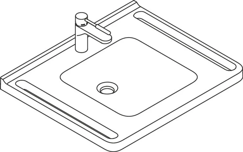 - mit Ablagefläche und tiefem rechteckigem Becken mit großzügigen Radien