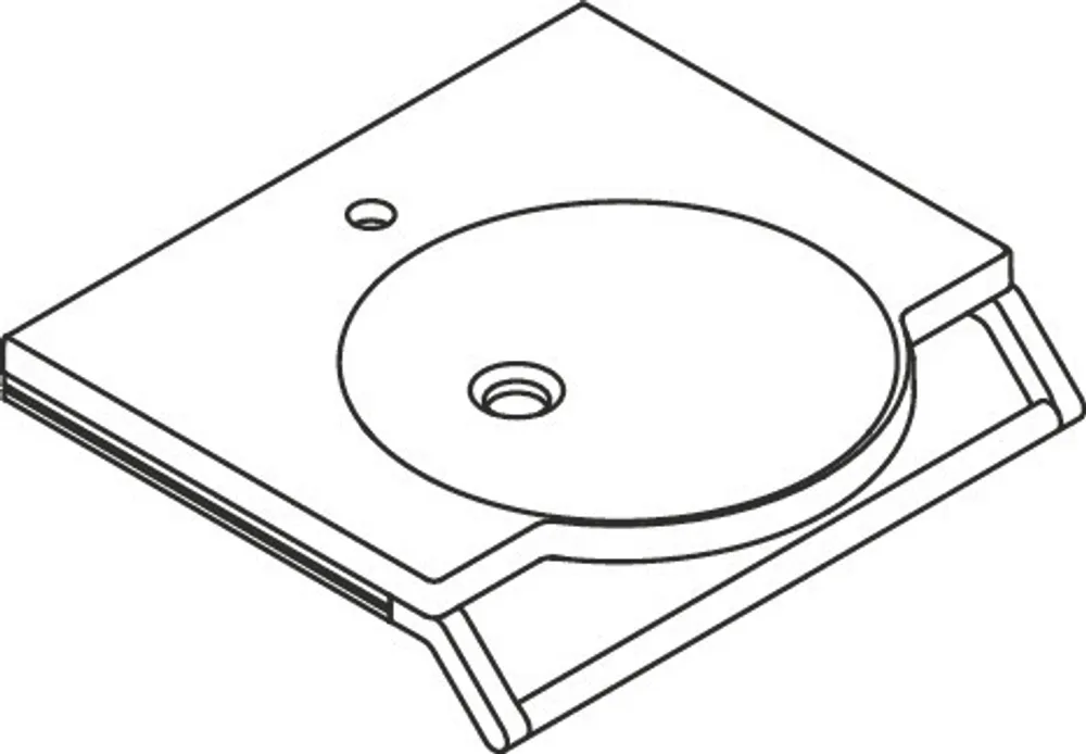 Waschtisch aus Mineralguss, alpinweiß, mit Ablagefläche und rundem Becken, Breite 600 mm, Tiefe 550 mm, Waschmuldentiefe 80 mm, ohne Überlauf, für Einlocharmatur vorgerichtet, unterfahrbar nach DIN 18040 und ÖNORM B1600/1601, belastbar nach DIN EN 14688, CE-Kennzeichnung nach Bauprodukteverordnung Nr. 305/2011.