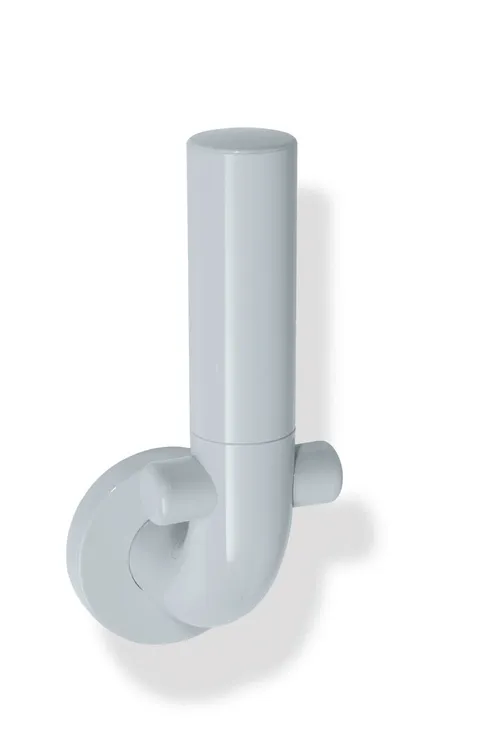 rechtwinklig nach oben gebogene Stange mit Befestigungsrosette, für 1 WC-Papierrolle, diebstahlgeschützt durch verdeckte Verschraubung, 161 mm hoch, und 91 mm tief, Rosettendurchmesser 70 mm, aus hochwertigem Polyamid nach HEWI Farbtabelle, inklusive korrosionsfreiem HEWI Befestigungsmaterial.