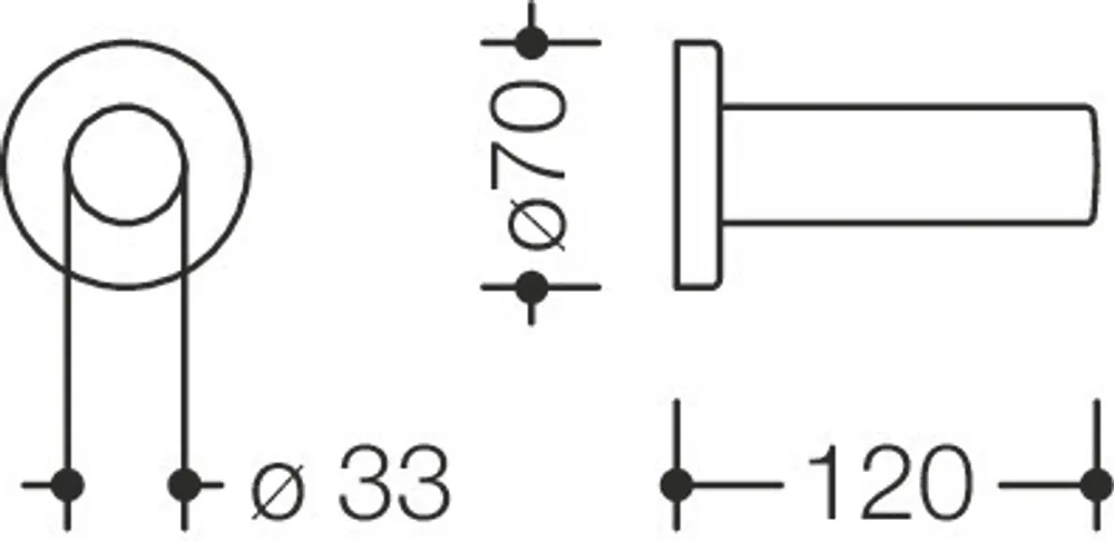 - 120 mm lang, Durchmesser 33 mm, Rosette 70 mm Durchmesser